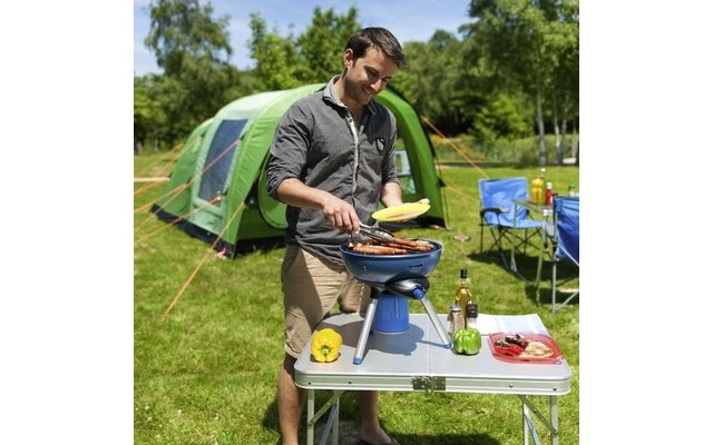 ¿Prefiere cocinar o asar hoy? Ambas cosas son posibles con esto. Accesorios variables para cocinar, asar o freír. Con encendido piezoeléctrico para un rápido encendido sin cerillas. Suministro de calor finamente regulable para un resultado de asado convincente. Accesorio para asar/hornear con recubrimiento de teflón. Placa de parrilla con revestimiento antiadherente para mejores resultados de asado, para facilitar la limpieza la bandeja de agua sirve como sistema de recogida de grasa. Para el transporte, basta con guardar todas las piezas en la parrilla y cerrar la tapa.