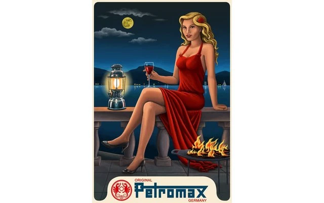 El letrero retro de Petromax, fabricado en chapa de acero, es la decoración ideal para su hogar gracias a su acabado de alta calidad y al glamuroso motivo de pin-up. La ligereza le da al cartel una estabilidad adicional, los bordes doblados y las esquinas redondeadas, junto con los agujeros precurvados, completan el encanto retro de los años pasados. La dama del vestido rojo, el Petromax HK500 y el cuenco de fuego parecen tridimensionales gracias a su relieve en varios niveles. Nuestro cartel de hojalata de Petromax es imprescindible para los aficionados y coleccionistas.
