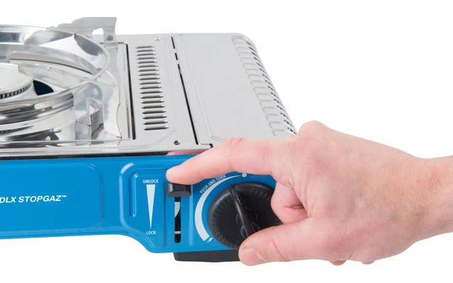 Para facilitar el transporte y el almacenamiento seguro, la cocina de gas de un quemador se suministra en un maletín de plástico