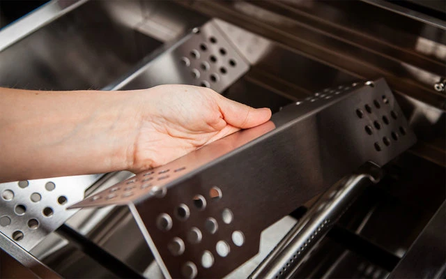 Se puede colocar una rejilla transversal directamente sobre los quemadores para ganar aún más altura (por ejemplo, para trabajar con una olla) se pueden utilizar accesorios opcionales como la placa de parrilla de hierro fundido. Este pequeño cambio da a la parrilla compacta G201 aún más opciones, lo que la hace aún mejor