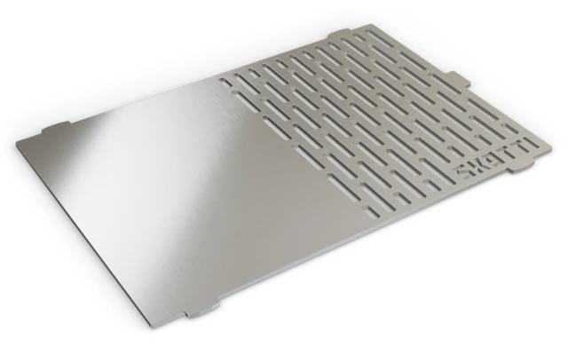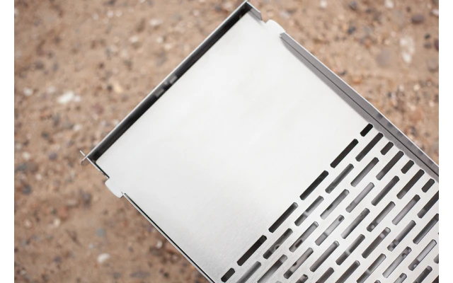 Plancha es español y significa plancha. Coloque la Plancha SKOTTI en su grill SKOTTI en lugar de la rejilla y, gracias al calor indirecto de la plancha, prepare alimentos maravillosamente tiernos y jugosos como gambas, verduras o setas. ¿O qué tal un huevo frito a la plancha? La Plancha SKOTTI cabe en la bolsa de su grill SKOTTI para transportarla.