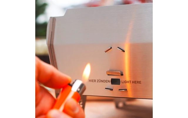 La SKOTTI sigue siendo la mejor opción para hacer barbacoas en el parque, en el lago, en el balcón – en la mesa o en una manta de picnic, incluso en la tabla de snowboard, en la tabla de paddle en mar abierto o en el capó – con la SKOTTI realmente puede hacer barbacoas en cualquier lugar. Es la primera barbacoa de gas del mundo que consta de piezas enchufables: puede montarla en un minuto sin herramientas. Y se calienta tanto como una barbacoa normal. Encienda el cartucho de gas, acerque el encendedor al orificio de encendido y ¡listo!
